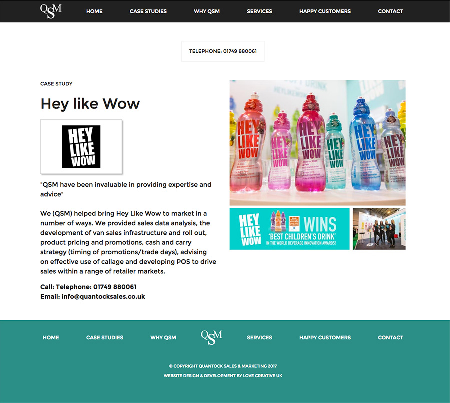 The new mobile friendly website is a single page scroller with a separate page template for case studies. Case studies can be easily added at any time. QSM work with some of the UK’s biggest soft drink brands and idea behind the new website was to get these big brands to the forefront, which is exactly what QSM do in the real world!